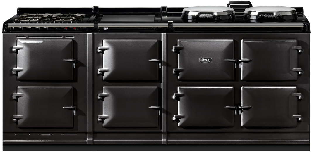 The R7 offers classic AGA styling and boasts the gleaming vitreous enamel finish which takes three days to achieve at our factory in Shropshire, England. Built and manufactured to our meticulous standards, these models feature three cast-iron ovens and two independently controlled hotplates (boiling and simmering plates), while the 150 models feature two additional ovens for slow cooking and warming, and the choice of either a warming plate or a single-zone induction cooktop.These ranges are highly detailed, from the AGA embossed cast-iron oven doors to the branded handrails and black flush fitting side panels.