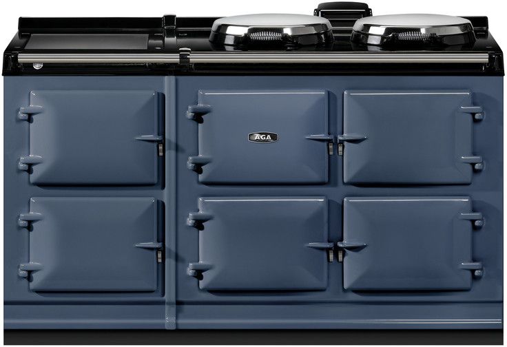 The R7 offers classic AGA styling and boasts the gleaming vitreous enamel finish which takes three days to achieve at our factory in Shropshire, England. Built and manufactured to our meticulous standards, these models feature three cast-iron ovens and two independently controlled hotplates (boiling and simmering plates), while the 150 models feature two additional ovens for slow cooking and warming, and the choice of either a warming plate or a single-zone induction cooktop. These ranges are highly detailed, from the AGA embossed cast-iron oven doors to the branded handrails and black flush fitting side panels.