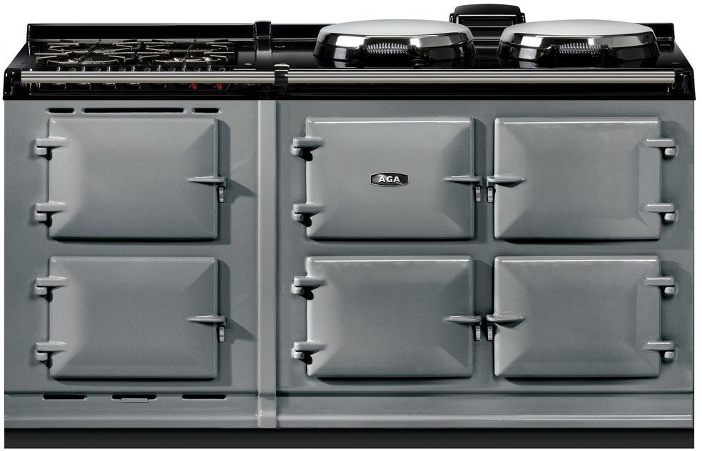 The R7 offers classic AGA styling and boasts the gleaming vitreous enamel finish which takes three days to achieve at our factory in Shropshire, England. Built and manufactured to our meticulous standards, these models feature three cast-iron ovens and two independently controlled hotplates (boiling and simmering plates), while the 150 models feature two additional ovens for slow cooking and warming, and the choice of either a warming plate or a single-zone induction cooktop. These ranges are highly detailed, from the AGA embossed cast-iron oven doors to the branded handrails and black flush fitting side panels.