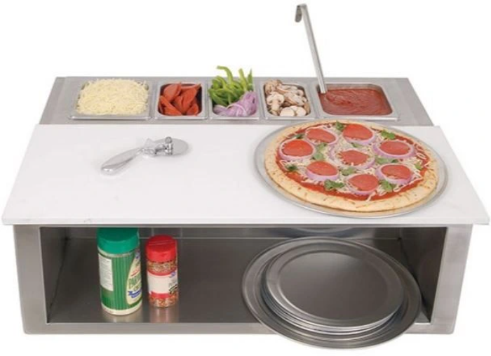 Restaurant-inspired plating station with food pans, carving board, and plate storage below. Create food presentations like a professional.Read More