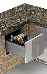 Save valuable counter space with the under-counter ice drawer and beverage center