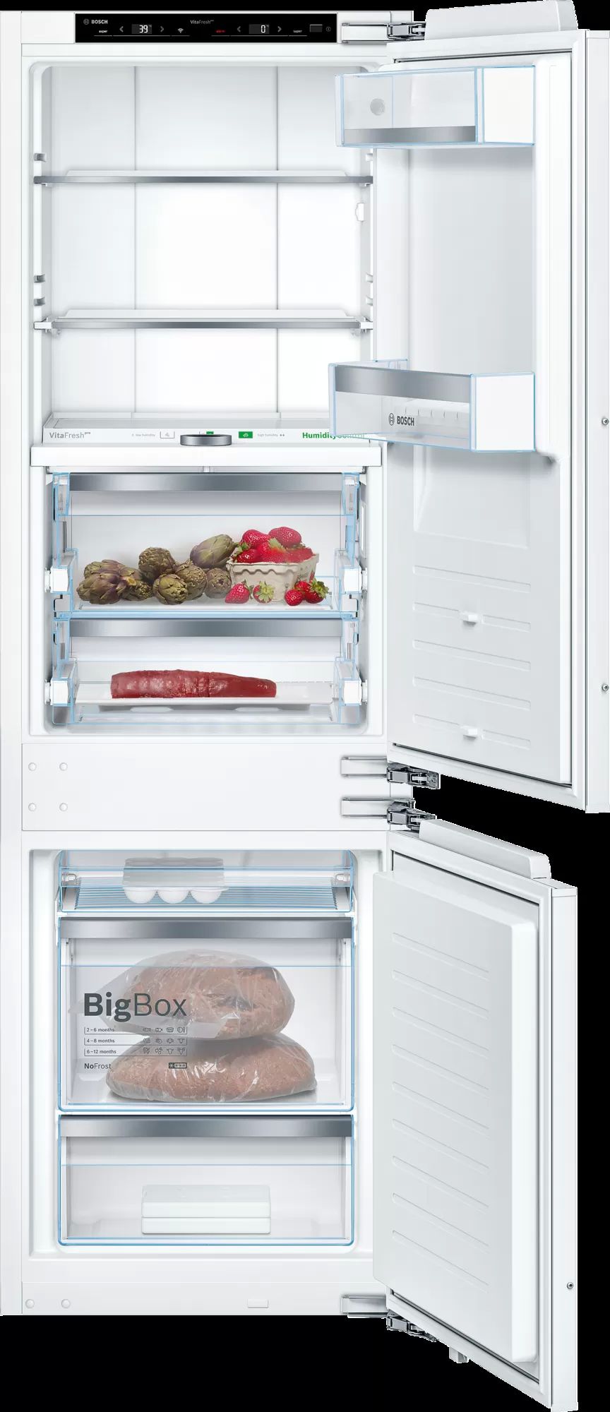 Adding new food to the freezer raises the internal temperature, which can result in defrosting and a loss of flavor. The SuperFreezing function ensures that new food is frozen quickly and thereby prevents the other content inside the freezer from defrosting. Appliances with an automatic freezing function return to normal operation once the required temperature is reached, in order not to waste energy. As a result, frozen food keeps its flavor, even when new food is being added.