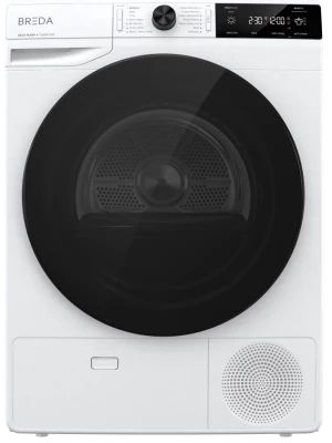 24” white, 9 kg / 19.8 lb capacity electric heat pump / ventless dryer with SS drum, 14 Programs: Cotton Extra Dry, Cotton Normal, Cotton Damp Iron, Mixed Fabric, Mixed Damp Iron, Wool, Delicates, Shirts - Perm. Press, Active Wear, Air Refresh, Down Wear, Time, Baby (clothes) & Bedding, Auxiliary Functions: Half Load, EcoEye, Extra Dry, Time Dry & Anti-Crease. Brushless motor, Time Delay, child lock, & adjustable feet. Energy Star rated.