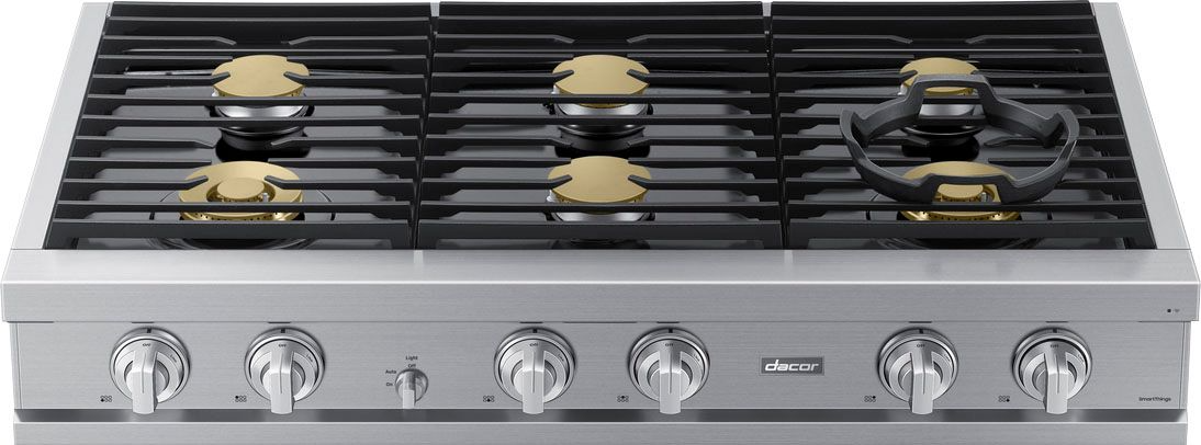 Elegance meets function with a Dacor rangetop, and no detail is overlooked. Glowing Illumina™ knobs shine and add a warm, welcoming glow to your kitchen.