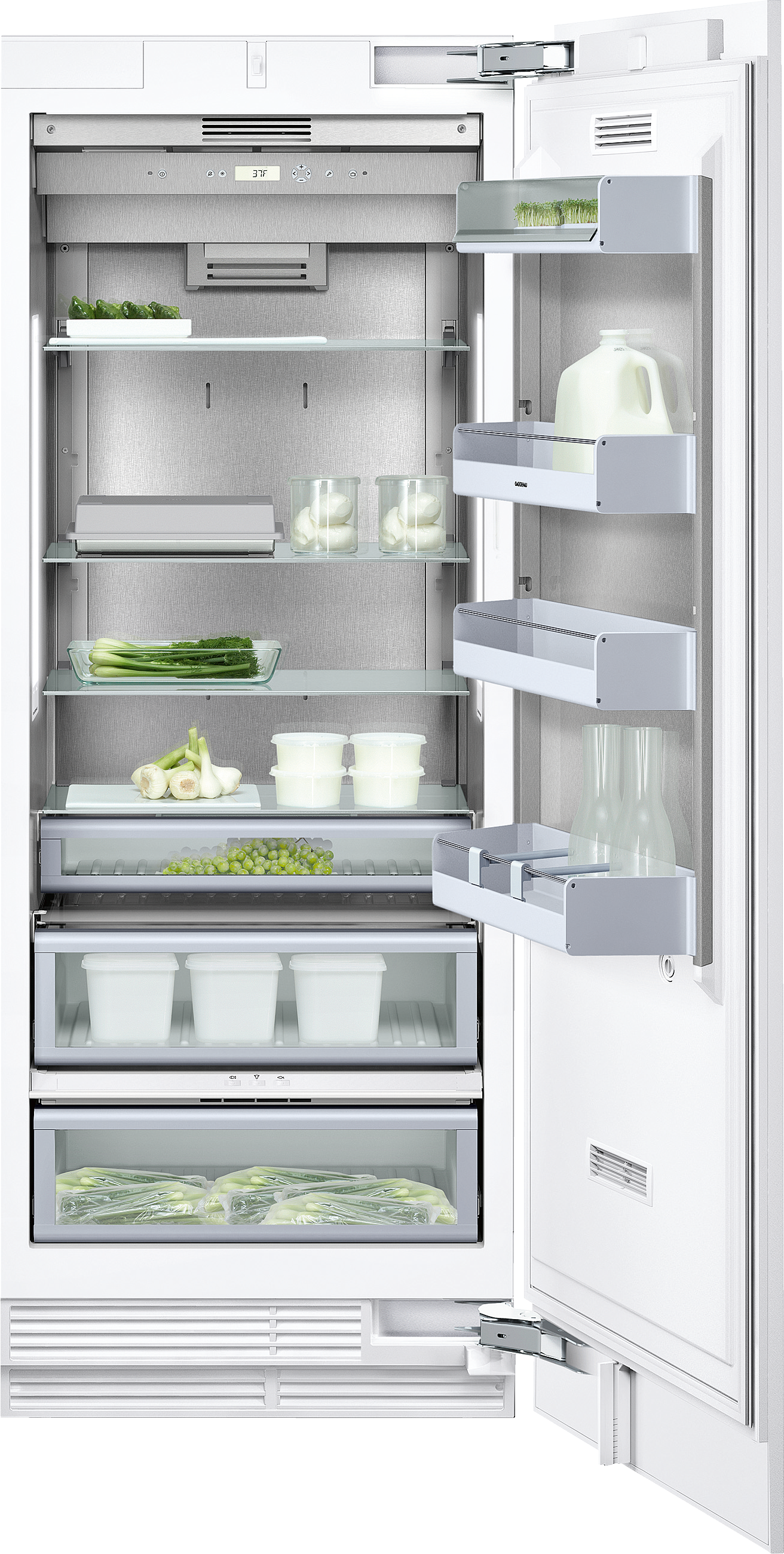 With net volumes of 17 or 13 cubic feet, even large supplies can be cooled perfectly in these refrigerators. Their unique capacity is rounded off by many technical functions, such as a separately controlled refrigerated drawer to cool sensitive foods such as fish, meat or vegetables and motorized glass shelves to easily make the most of the available space.Read More