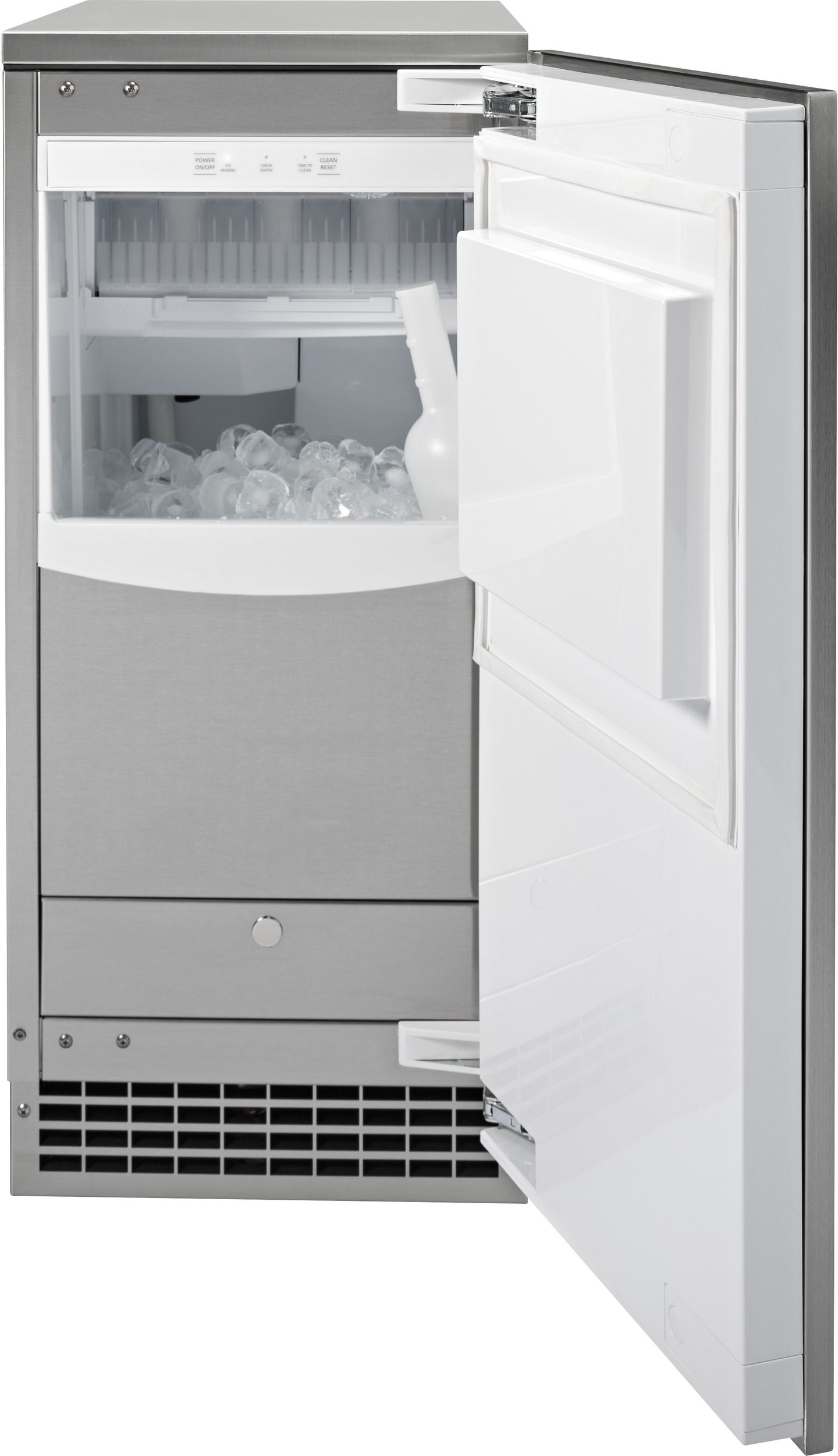 Panel ready designed for personalization with customer-supplied cabinet-compatible panel and custom handle. Large capacity ice bin holds 26 pounds of gourmet clear ice and automatically shuts off when the bin is full.Read More
