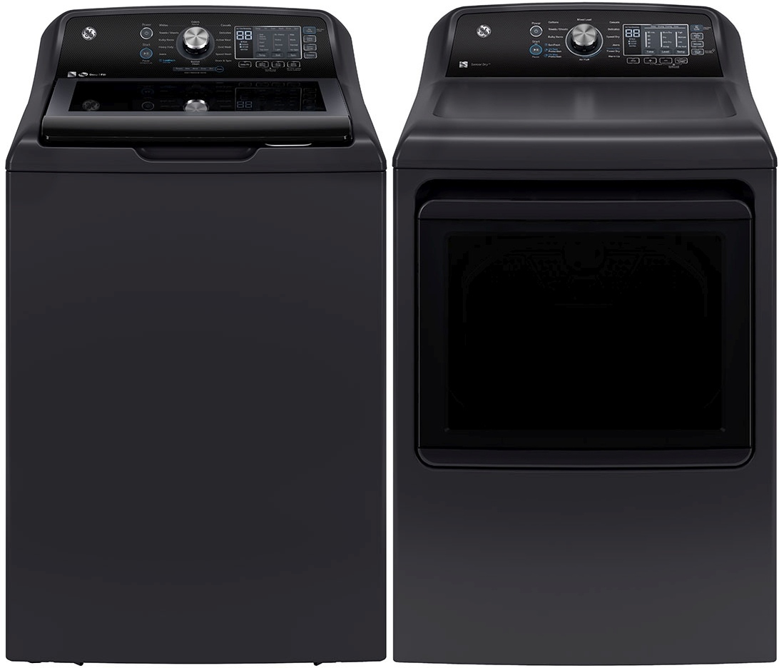 GE® Diamond Gray Top Load Laundry Pair with a 5.3 cu. ft. capacity top load washer and a 7.4 cu. ft. capacity front load electric dryer.Read More