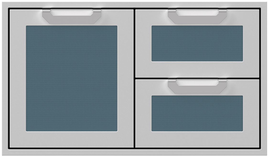 Combo door/drawers deliver highly convenient heavy-duty storage. The commercial-grade handles, recessed Marquise Accented™ panels and heavy-gauge welded body complement Hestan grills in form and function.Read More