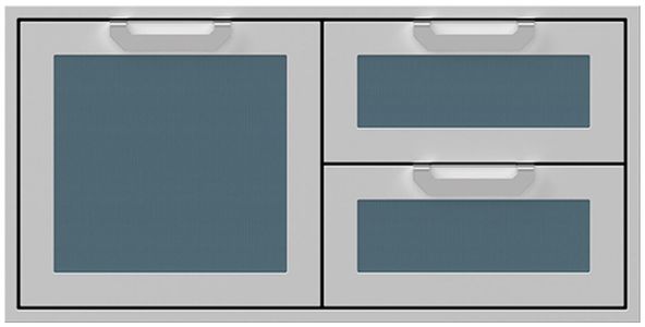 Combo door/drawers deliver highly convenient heavy-duty storage. The commercial-grade handles, recessed Marquise Accented™ panels and heavy-gauge welded body complement Hestan grills in form and function.Read More