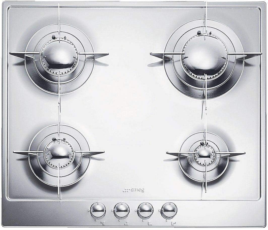 Smeg 24" "Piano Design" Gas Cooktop-Stainless Steel with stainless steel base, knobs, pan stands, and burner caps. electronic ignitionRead More
