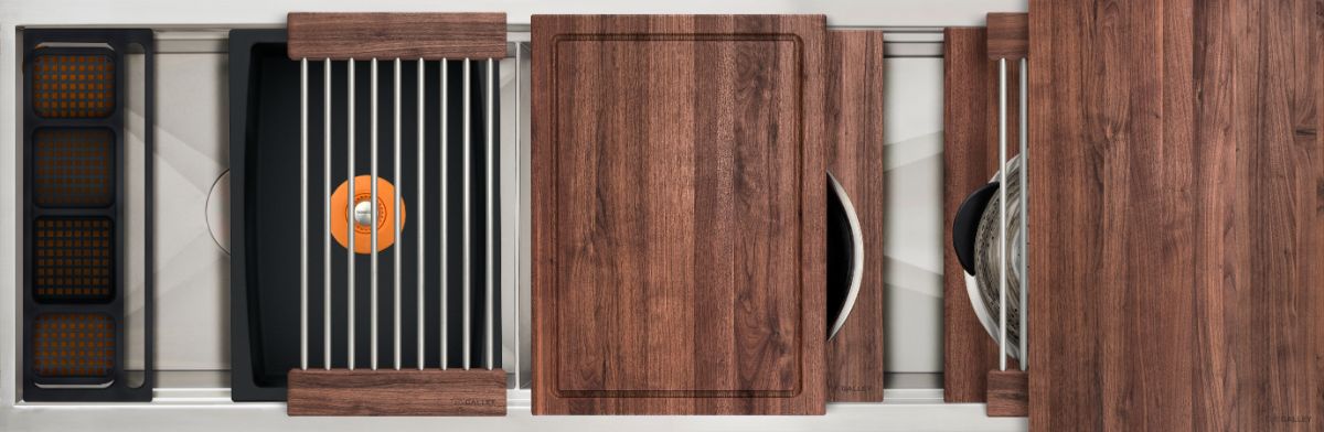 Our matte black Graphite Wood Composite material perfectly complements a contemporary, transitional, or traditional kitchen design and looks wonderful with a wide range of cabinet and countertop colors. This high-performance, dense material is only 1/2 inch thick, is gentle on your knives, and is easy to clean in the Workstation or in the dishwasher.Read More