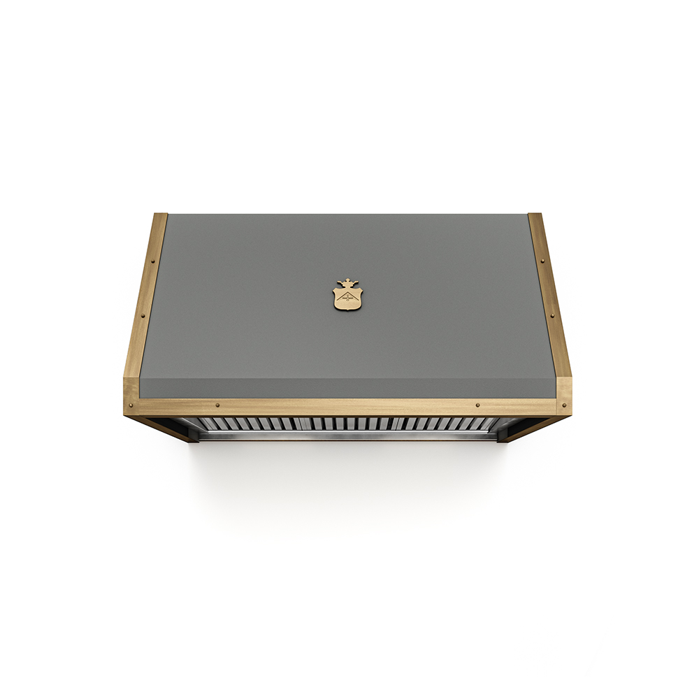 CPD017 is a domestic stainless steel pyramid hood entirely made of high-thickness fire-painted steel with brass edges. The design of the trim is customizable, as well as the high-thickness metal that can be painted in any colour.The hood is also available in copper or brass. The pyramid shape fits perfectly into contemporary-design kitchens and thanks to the vertical sides it is ideal to be located, for example, between two walls. It is equipped with a motor that guarantees an optimal suction of vapours, fumes and odours. Internally, the hood is equipped with LED lights.