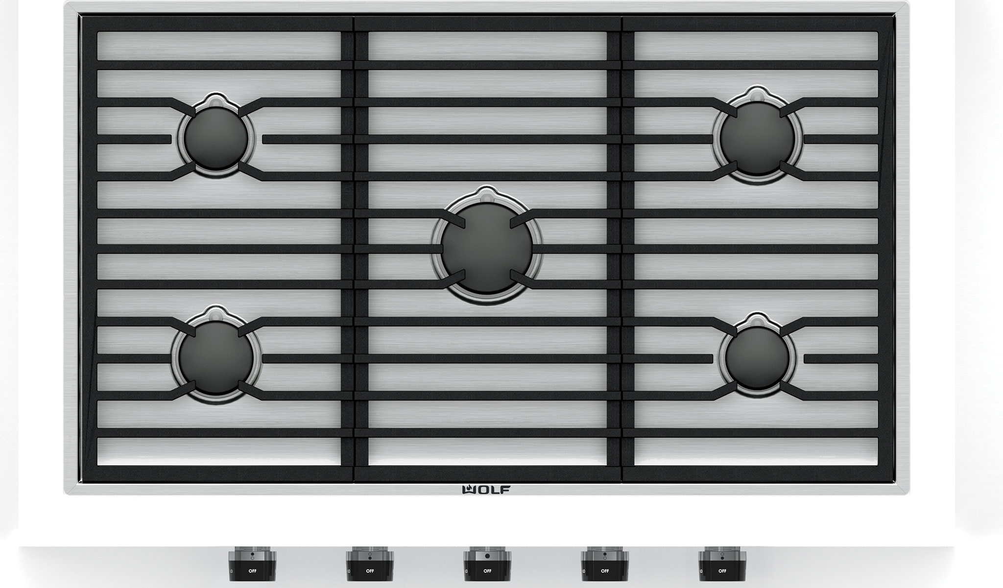 The most powerful burner on a Wolf gas cooktop ever. Achieve restaurant-quality sears, or boil even large stock pots of water faster than with earlier models. Continuous cast-iron grates with a matte black, porcelain finish let you slide pots easily on and off heat, or from one burner to another.Read More