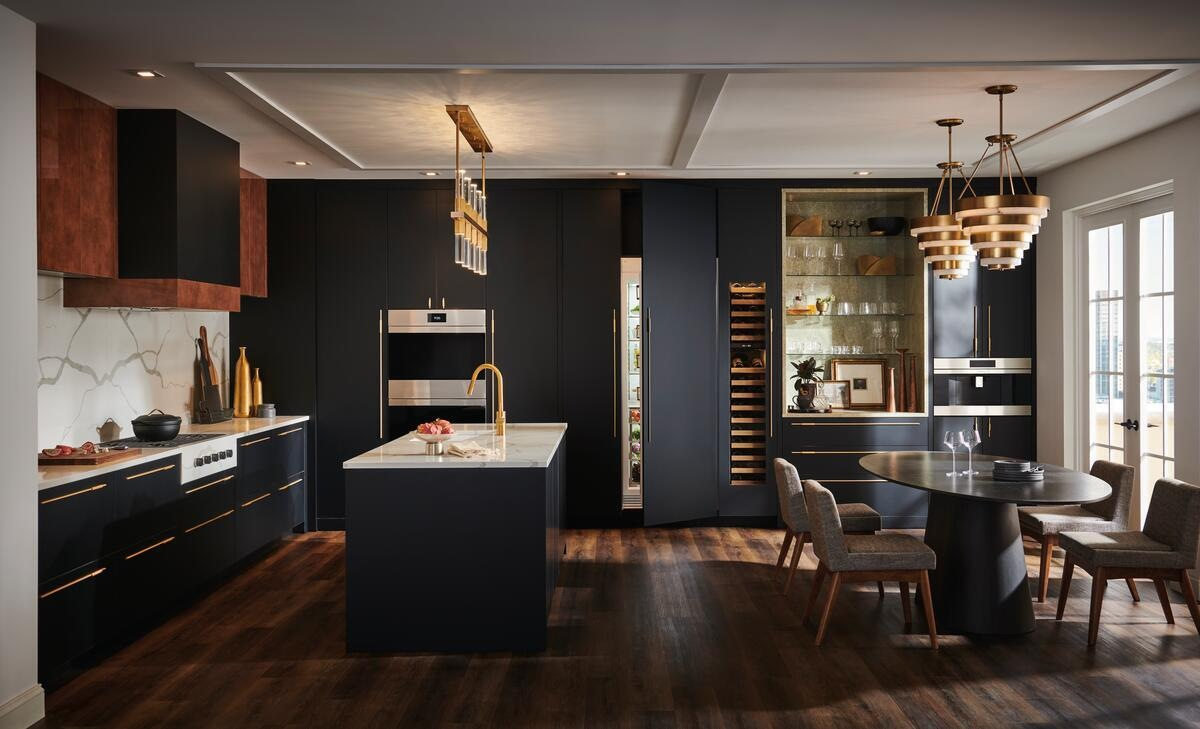 Blends in with a sleek black glass, handleless design